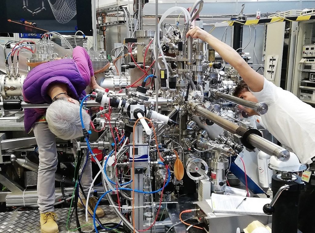 The photo is made at ALBA Synchrotron, in the middle of an experiment. We can see in the picture Carmen Ocal, ICMAB researcher working at the same group as Esther Barrena. They both work on the preparartion and characterization or surfaces and interfaces. The picture has a «comic» feeling, it makes you smile, doesn’t it?